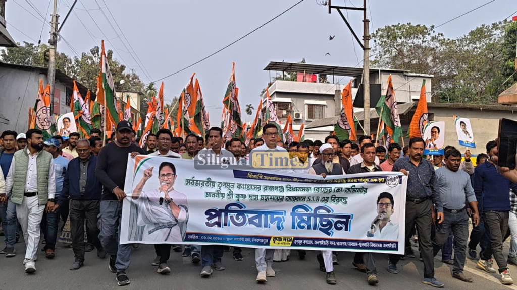 রাজগঞ্জ, ১ ফেব্রুয়ারিঃ বিজেপি সরকারের দমন–পীড়ন নীতি ও SIR-এর বিরুদ্ধে তৃণমূলের প্রতিবাদ মিছিল ও সভা।