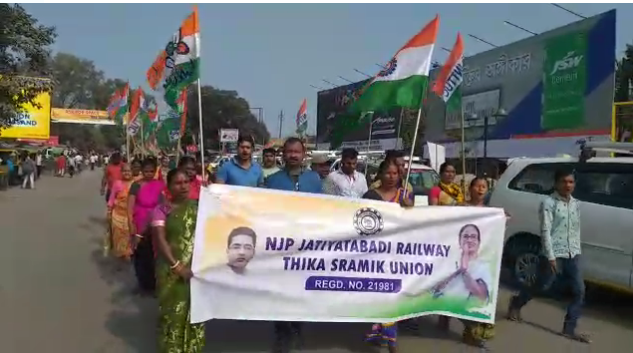 শিলিগুড়ি,৩০ জানুয়ারিঃ শ্রমিক নিয়োগের দাবি জানিয়ে রেলের কাজ বন্ধ করে বিক্ষোভে শামিল হল তৃণমূলের শ্রমিক সংগঠন।