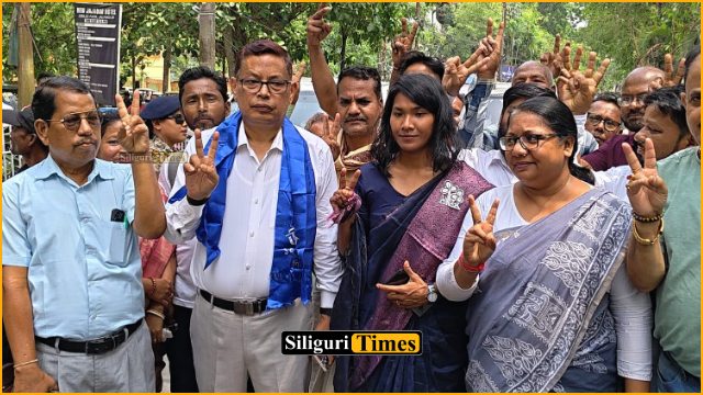 রাজগঞ্জ, ৬ এপ্রিলঃ অবশেষে কাটল সব জল্পনা।মনোনয়ন জমা দিলেন স্বপ্না বর্মন।দীর্ঘ অনিশ্চয়তা ও আইনি জটিলতার অবসান ঘটিয়ে রাজগঞ্জ বিধানসভা কেন্দ্রের তৃণমূল কংগ্রেস প্রার্থী স্বপ্না বর্মন সোমবার মনোনয়নপত্র পেশ করলেন।
