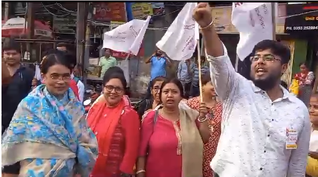 শিলিগুড়ি, ১৩ জুনঃ কেন্দ্রের বিরুদ্ধে বঞ্চনার অভিযোগ তুলে শিলিগুড়িতে প্রতিবাদ মিছিল দার্জিলিং জেলা মহিলা তৃণমূল কংগ্রেসের।তৃণমূলের মিছিল যেতেই চোর চোর স্লোগান তুললো বাম যুব ছাত্র সংগঠন।