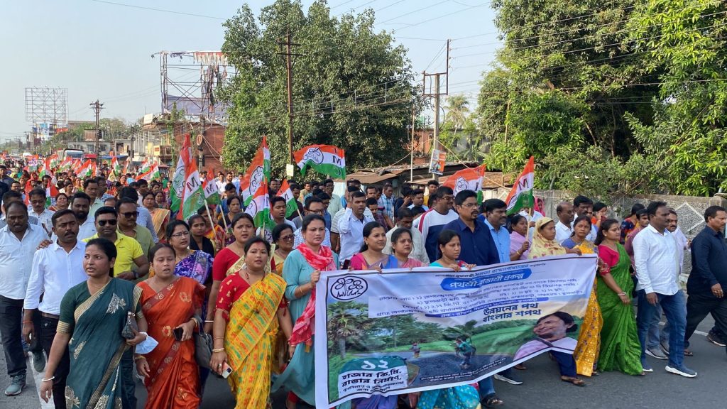 এই বিষয়ে জলপাইগুড়ি জেলা পরিষদের সদস্য দেবাশীষ প্রামাণিক বলেন, মুখ্যমন্ত্রী মমতা বন্দ্যোপাধ্যায় ভার্চুয়ালি রাজ্যে জুড়ে ২২টি জেলাতে পথশ্রী-রাস্তাশ্রী প্রকল্পের মাধ্যমে বিভিন্ন রাস্তার শিলান্যাস করবেন।এই কারণে মুখ্যমন্ত্রীকে ধন্যবাদ জানাতে মিছিল করা হল।