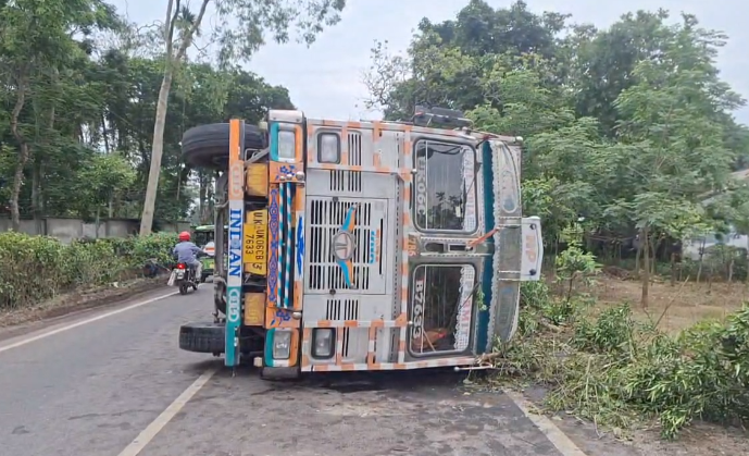 জানা গিয়েছে, ঘোষপুকুর-খড়িবাড়ি রাজ্য সড়কে অসম থেকে বিহারের সাহারনপুরে বাঁশ নিয়ে যাচ্ছিল লরিটি।হঠাৎ সোনচান্দি চা বাগানে রাজ্য সড়কের বাঁকে নিয়ন্ত্রণ হারিয়ে উল্টে যায় লরিটি।