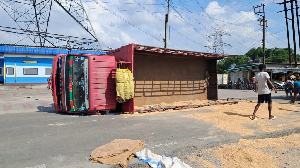 প্রত্যক্ষদর্শীরা জানান, ধান বোঝাই লরিটি বলরাম সংলগ্ন একটি কারখানার দিকে যাচ্ছিল।ওই সময় হঠাৎ নিয়ন্ত্রণ হারিয়ে রাস্তার ওপর উল্টে যায় গাড়িটি।লরির চালক সামান্য আহত হন।
