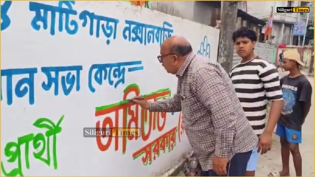 বাগডোগরা, ৩১ মার্চঃ দেওয়াল লিখন করে ভোট প্রচারে মাটিগাড়া-নকশালবাড়ি বিধানসভার কংগ্রেস প্রার্থী অমিতাভ সরকার।
